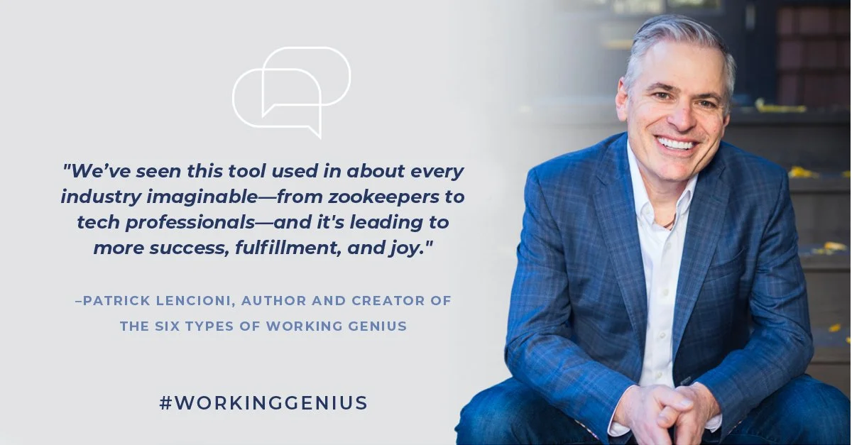 When you understand the people you work with respond to situations based on their Working Geniuses, then you start to understand how to better work with them. Even better, you develop a shared language to ensure everyone gets on the same page and efficiency goes up!